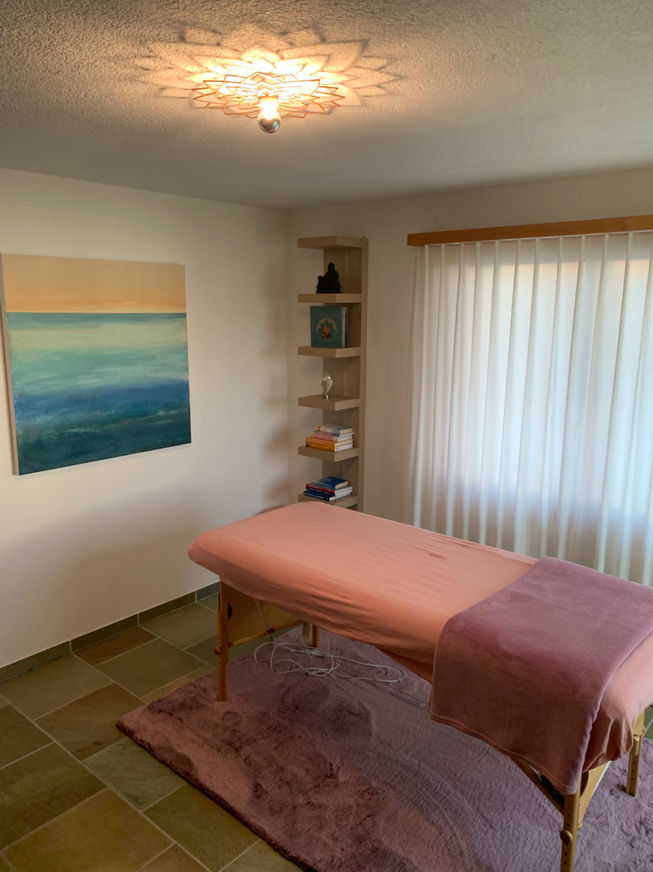 Ein Praxisraum sollte in Wangen SZ in eine gemütliche Wohlfühlpraxis für Massagen und Beratungsgespräche umgewandelt werden. Durch Farbe und den Einsatz von geeigneten Möbeln und Accessoires wurde Gemütlichkeit in den Raum gebracht.
